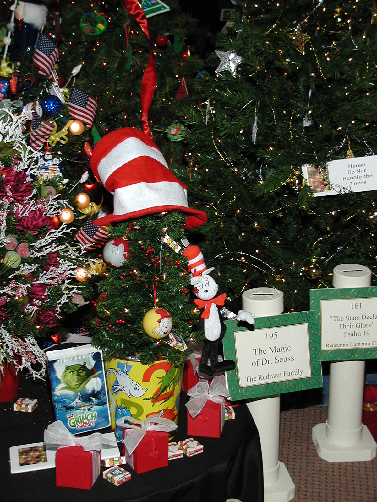 Picture #19: The Magic of Dr. Seuss Small: 600x823, 141,903 bytes (139K), (html file) Large: 1200x1600, 1,278,563 bytes (1.2M), (html file) Copyright, Michael Meissner 2003, All rights reserved Olympus C-2100UZ camera f/2.8, ISO 100, 1/250 sec, 11.6mm, shutter priority, SHQ, cloudy, matrix metering 35mm equivalent focal length 64.0mm Taken by Michael Meissner on November 28, 2003 10:17:57 Last modified on December 11, 2003 at 11:07 Shutter speed of 1/125 or 1/250 may indicate use of flash |