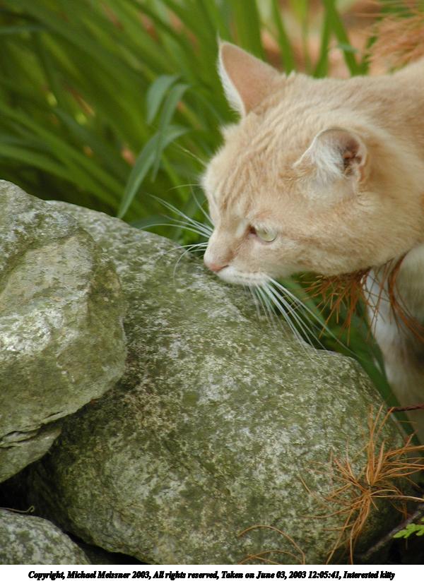 Picture #150: Interested kitty 600x823, 87,454 bytes (86K), (html file) Copyright, Michael Meissner 2003, All rights reserved Olympus C-2100UZ camera f/2.8, ISO 100, 1/200 sec, 45.8mm, auto mode, SHQ, cloudy, matrix metering 35mm equivalent focal length 254.0mm Taken by Michael Meissner on June 03, 2003 12:05:41 Last modified on June 03, 2003 at 15:54 |