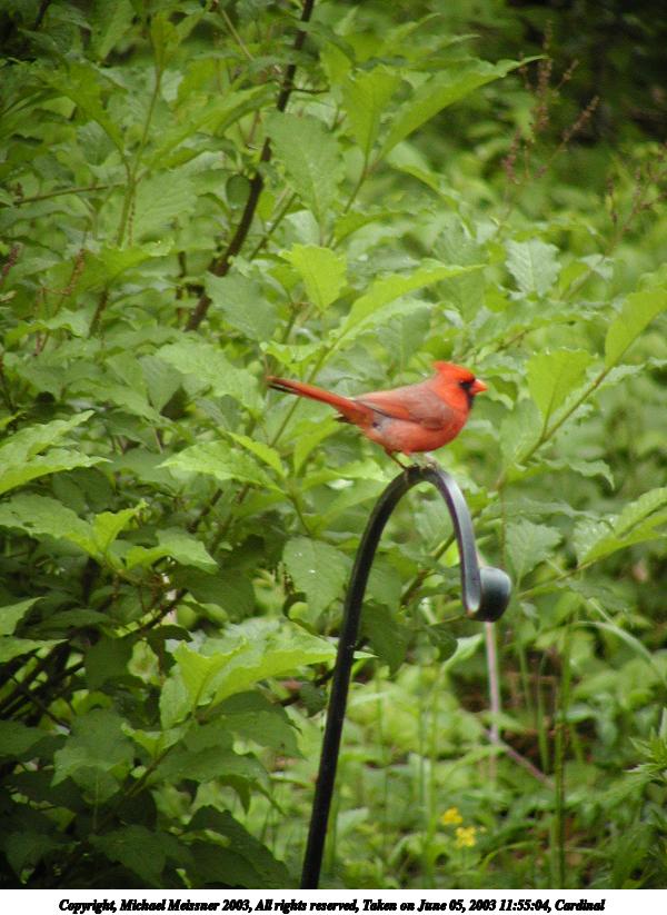 Picture #138: Cardinal #3 600x823, 85,806 bytes (84K), (html file) Copyright, Michael Meissner 2003, All rights reserved Olympus C-2100UZ camera f/3.5, ISO 200, 1/100 sec, 70.0mm, auto mode, SHQ, cloudy, matrix metering 35mm equivalent focal length 388.0mm Taken by Michael Meissner on June 05, 2003 11:55:04 Last modified on June 08, 2003 at 13:23 |