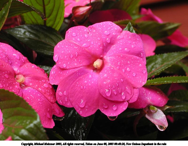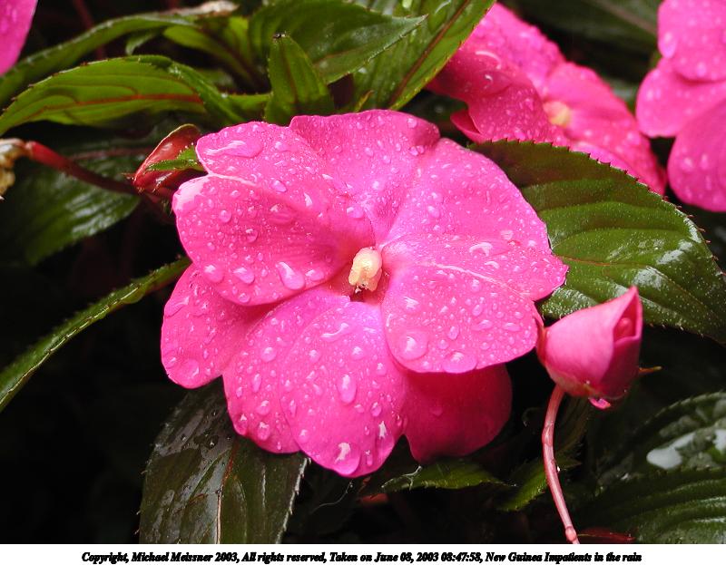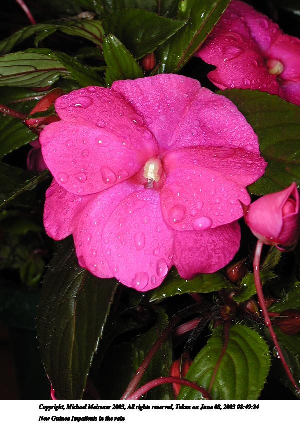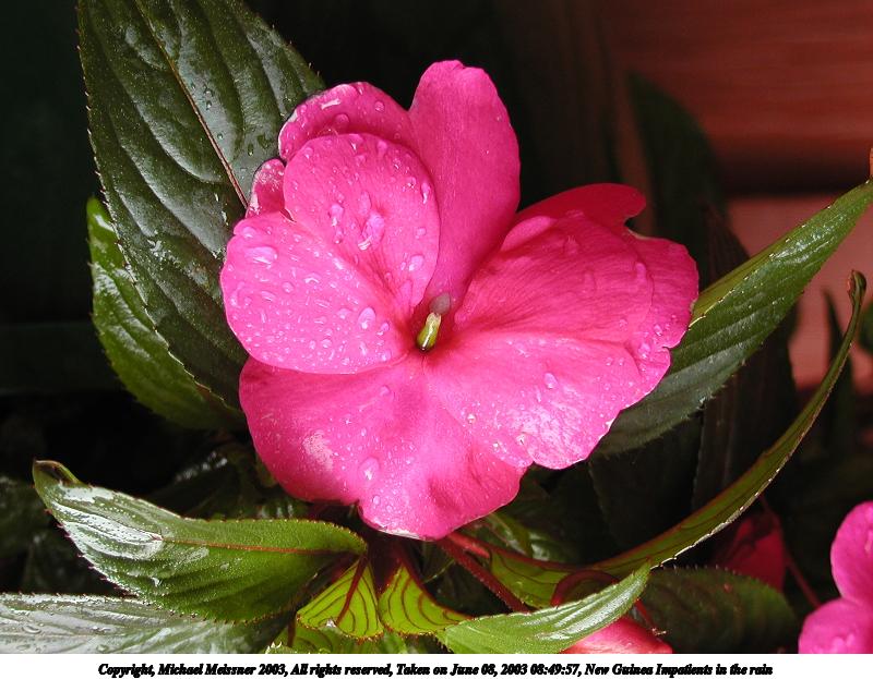 Picture #130: New Guinea Impatients in the rain #3 800x623, 81,440 bytes (80K), (html file) Copyright, Michael Meissner 2003, All rights reserved Olympus C-2100UZ camera f/4.5, ISO 100, 1/50 sec, 15.7mm, aperture priority, SHQ, cloudy, matrix metering 35mm equivalent focal length 87.0mm Taken by Michael Meissner on June 08, 2003 08:48:28 Last modified on June 08, 2003 at 13:32 |