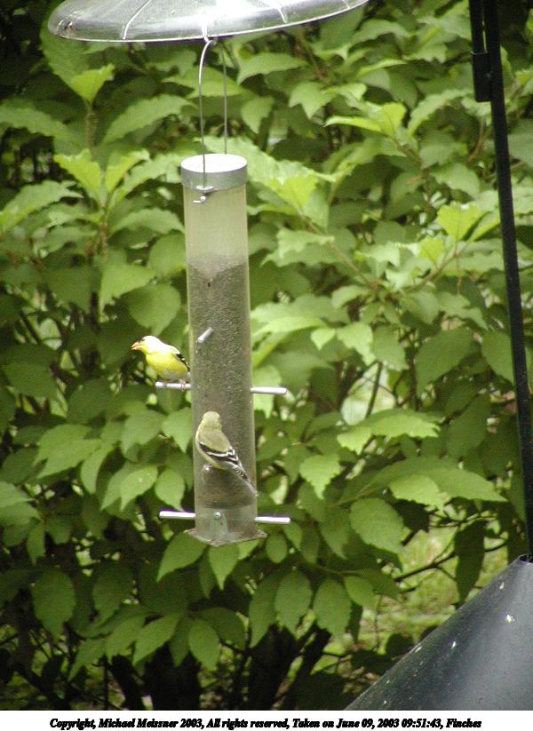 Picture #104: Finches #2 600x823, 88,633 bytes (87K), (html file) Copyright, Michael Meissner 2003, All rights reserved Olympus C-2100UZ camera f/3.5, ISO 400, 1/60 sec, 70.0mm, auto mode, SHQ, cloudy, matrix metering 35mm equivalent focal length 388.0mm Taken by Michael Meissner on June 09, 2003 09:51:43 Last modified on June 11, 2003 at 13:46 |