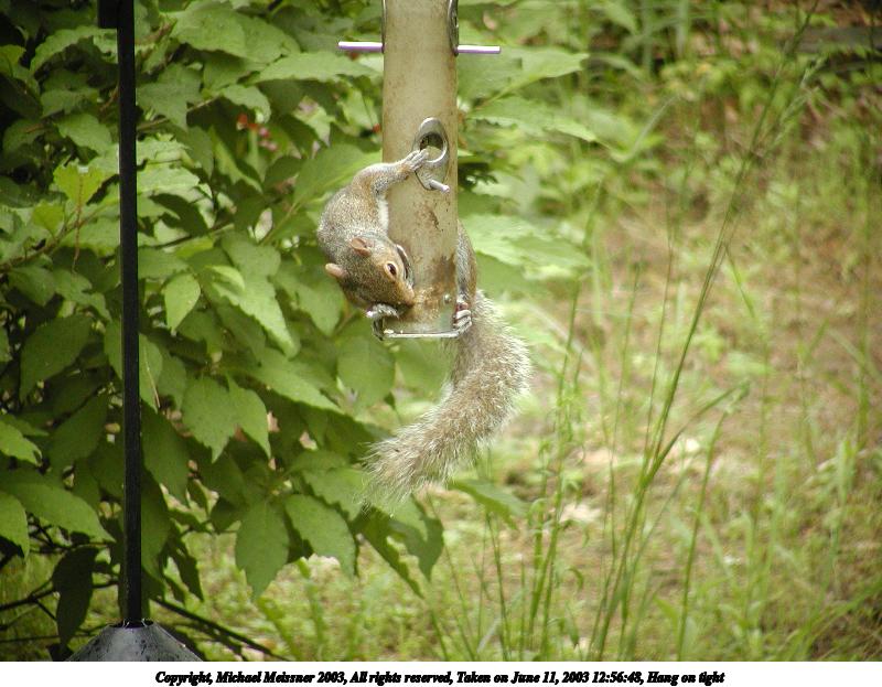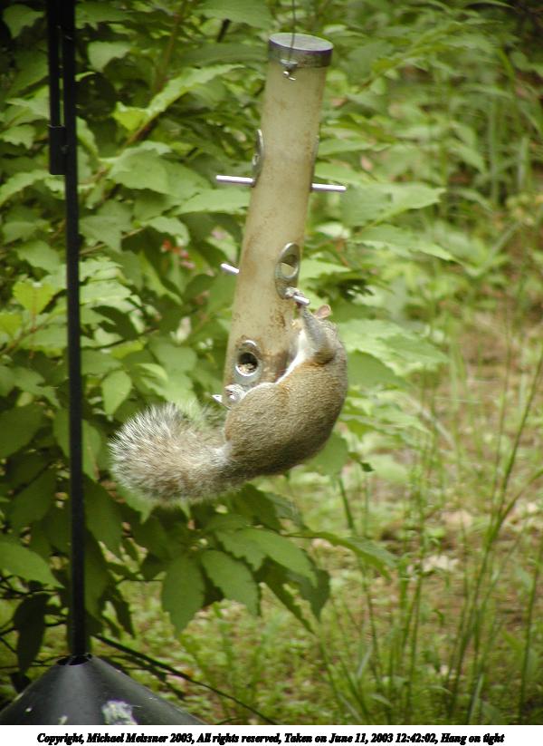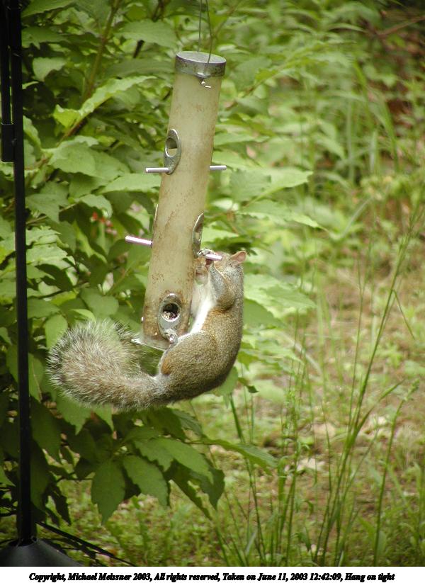 Picture #92: Hang on tight #3 800x623, 90,169 bytes (89K), (html file) Copyright, Michael Meissner 2003, All rights reserved Olympus C-2100UZ camera f/3.5, ISO 200, 1/125 sec, 65.2mm, auto mode, SHQ, cloudy, matrix metering 35mm equivalent focal length 362.0mm Taken by Michael Meissner on June 11, 2003 12:56:48 Last modified on June 11, 2003 at 13:58 Shutter speed of 1/125 or 1/250 may indicate use of flash |