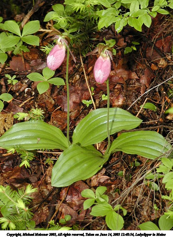 Picture #81: Ladyslipper in Maine 600x823, 143,571 bytes (141K), (html file) Copyright, Michael Meissner 2003, All rights reserved Olympus C-2100UZ camera f/2.8, ISO 100, 1/125 sec, 31.1mm, auto mode, SHQ, cloudy, matrix metering 35mm equivalent focal length 173.0mm Taken by Michael Meissner on June 14, 2003 12:48:54 Last modified on June 14, 2003 at 19:24 Shutter speed of 1/125 or 1/250 may indicate use of flash |