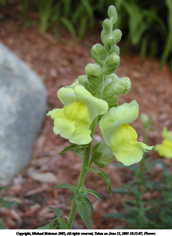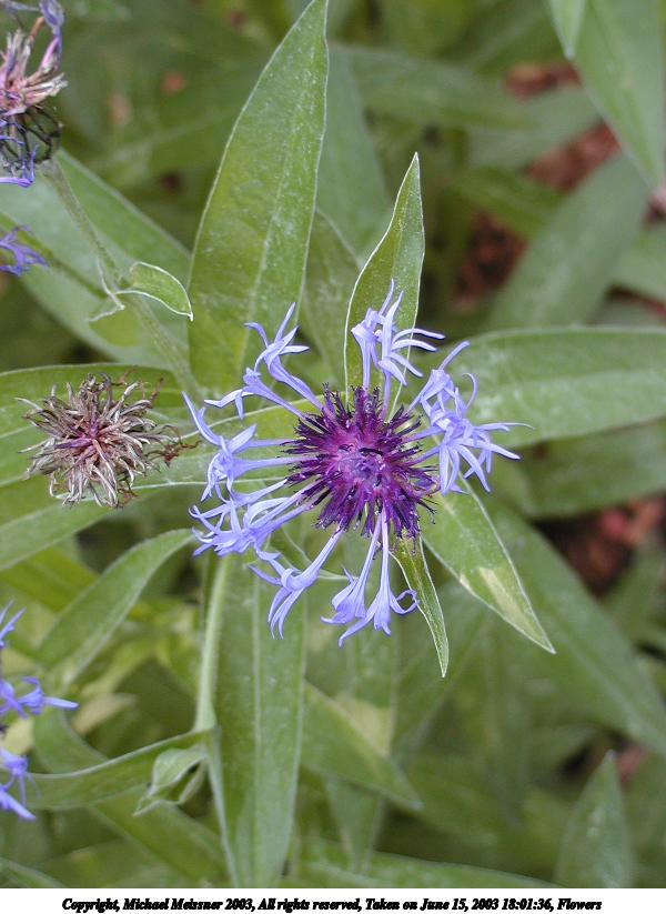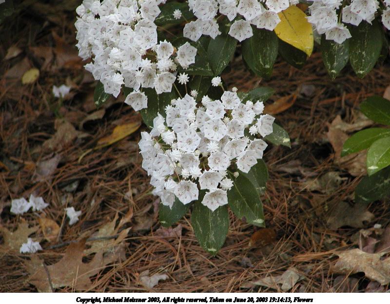 Picture #27: Flower #2 800x623, 51,300 bytes (51K), (html file) Copyright, Michael Meissner 2003, All rights reserved Olympus C-2100UZ camera f/2.8, ISO 200, 1/125 sec, 20.7mm, auto mode, SHQ, matrix metering, macro 35mm equivalent focal length 115.0mm Taken by Michael Meissner on June 20, 2003 19:23:46 Last modified on June 21, 2003 at 06:25 Shutter speed of 1/125 or 1/250 may indicate use of flash |