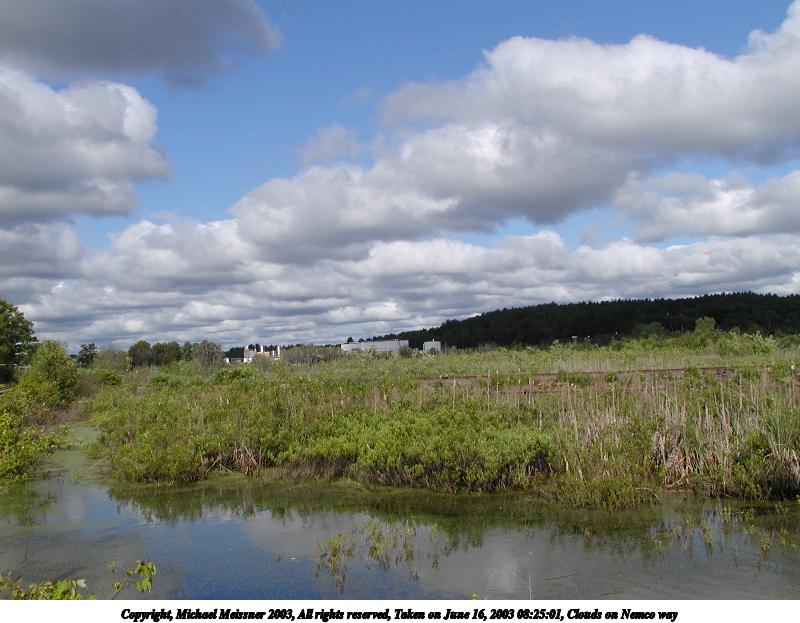 Picture #45: Clouds on Nemco way #3 800x623, 81,427 bytes (80K), (html file) Copyright, Michael Meissner 2003, All rights reserved Olympus C-2100UZ camera f/7.0, ISO 100, 1/500 sec, 8.0mm, auto mode, SHQ, matrix metering 35mm equivalent focal length 44.0mm Taken by Michael Meissner on June 16, 2003 08:25:24 Last modified on June 17, 2003 at 11:58 |