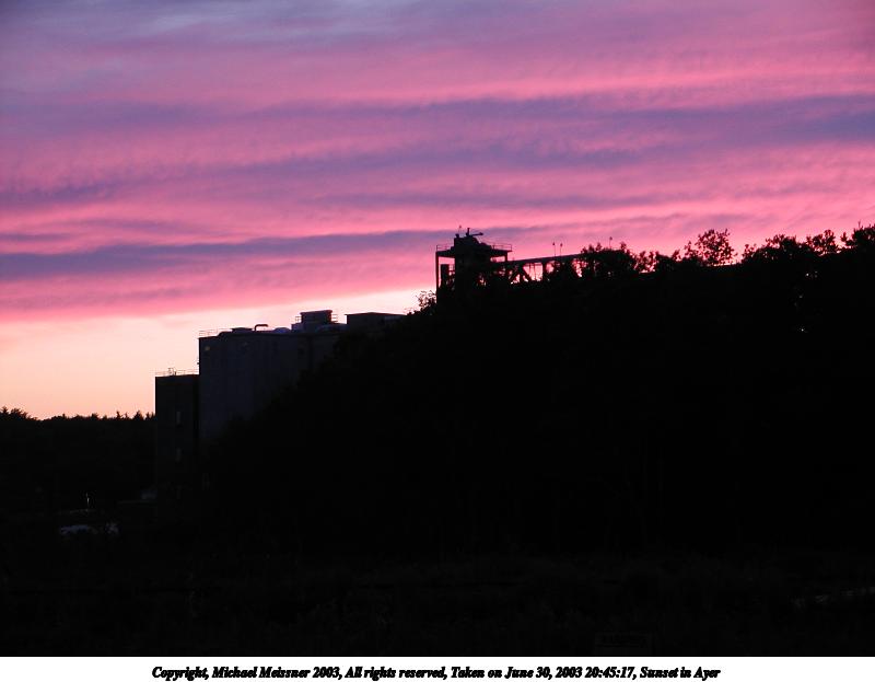 Picture #9: Sunset in Ayer #10 800x623, 42,104 bytes (42K), (html file) Copyright, Michael Meissner 2003, All rights reserved Olympus C-2100UZ camera f/2.8, ISO 100, 1/13 sec, 9.2mm, auto mode, SHQ, fluorescent, spot metering 35mm equivalent focal length 51.0mm Taken by Michael Meissner on June 30, 2003 20:46:46 Last modified on July 01, 2003 at 13:17 |