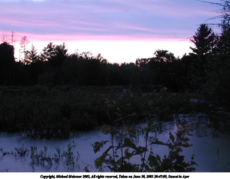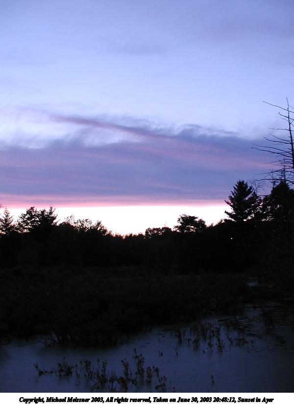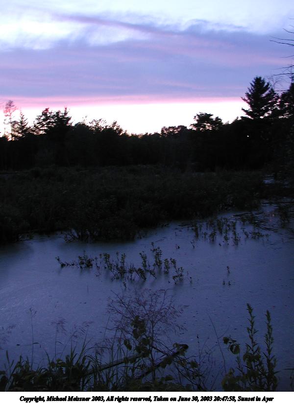 Picture #7: Sunset in Ayer #12 800x623, 40,411 bytes (40K), (html file) Copyright, Michael Meissner 2003, All rights reserved Olympus C-2100UZ camera f/2.8, ISO 100, 1/50 sec, 9.2mm, auto mode, SHQ, fluorescent, spot metering 35mm equivalent focal length 51.0mm Taken by Michael Meissner on June 30, 2003 20:46:43 Last modified on July 01, 2003 at 13:17 |