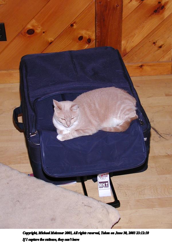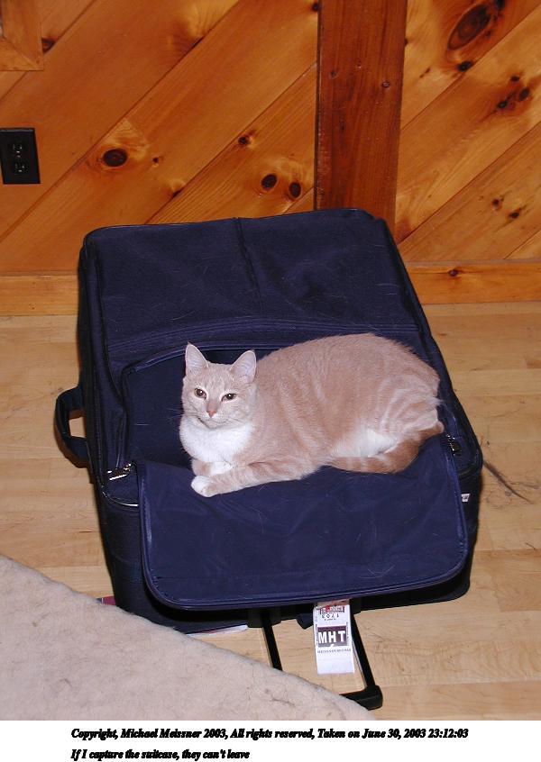 Picture #3: If I capture the suitcase, they can't leave 600x846, 68,019 bytes (67K), (html file) Copyright, Michael Meissner 2003, All rights reserved Olympus C-2100UZ camera f/2.8, ISO 100, 1/50 sec, 12.3mm, auto mode, SHQ, fluorescent, spot metering 35mm equivalent focal length 68.0mm Taken by Michael Meissner on June 30, 2003 23:12:03 Last modified on July 01, 2003 at 13:23 |