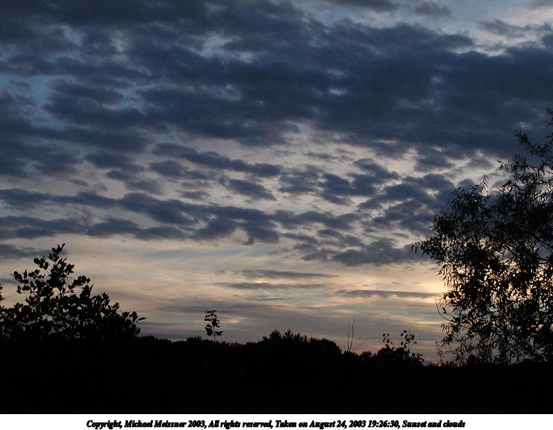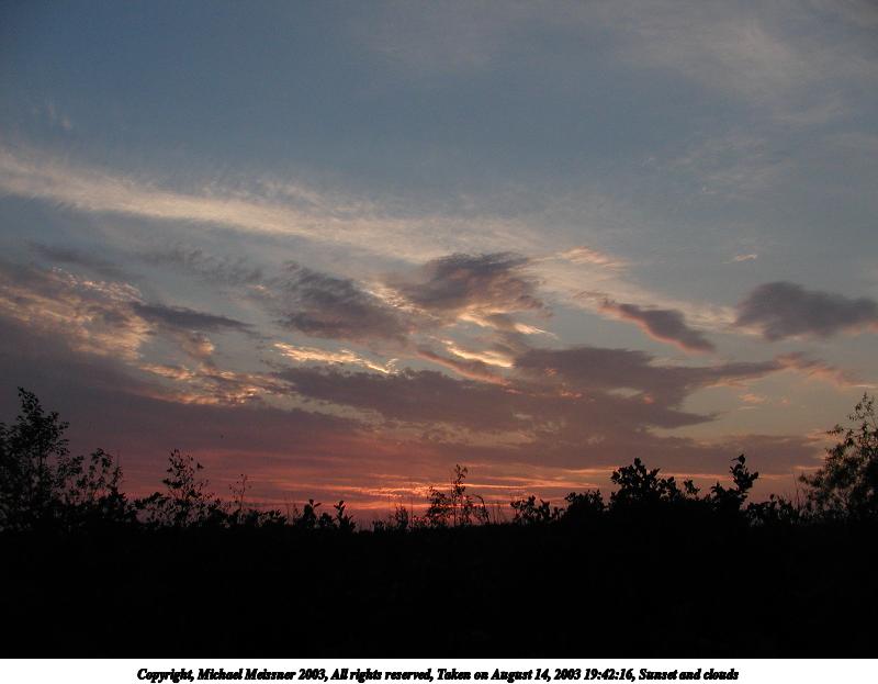 Picture #120: Sunset and clouds #6 800x623, 74,979 bytes (74K), (html file) Copyright, Michael Meissner 2003, All rights reserved Olympus C-2100UZ camera f/4.5, ISO 200, 1/500 sec, 12.3mm, auto mode, SHQ, spot metering 35mm equivalent focal length 68.0mm Taken by Michael Meissner on August 24, 2003 19:26:30 Last modified on September 02, 2003 at 11:35 |