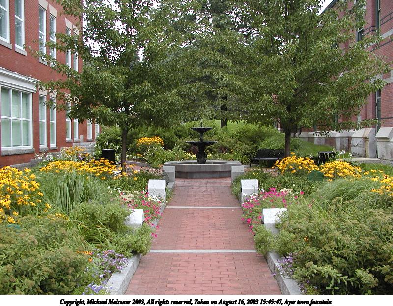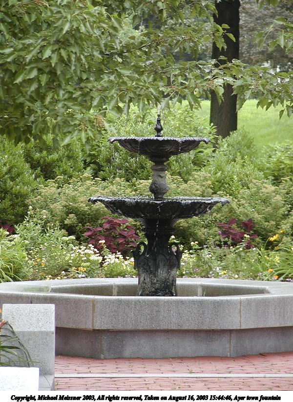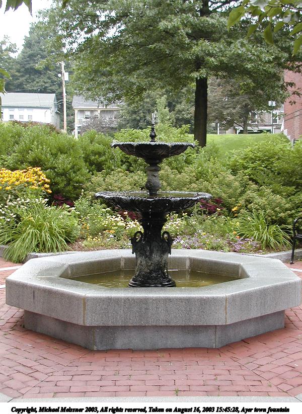 Picture #157: Ayer town fountain #3 600x823, 153,494 bytes (150K), (html file) Copyright, Michael Meissner 2003, All rights reserved Olympus C-2100UZ camera f/2.8, ISO 100, 1/100 sec, 9.7mm, auto mode, SHQ, matrix metering 35mm equivalent focal length 54.0mm Taken by Michael Meissner on August 16, 2003 15:45:28 Last modified on September 02, 2003 at 11:35 |