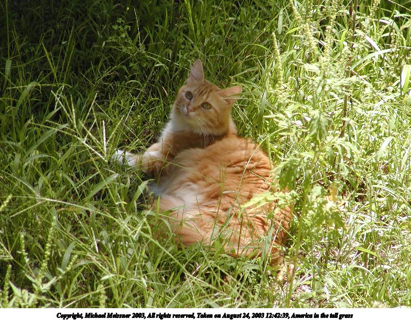 Picture #146: America in the tall grass 800x623, 169,673 bytes (166K), (html file) Copyright, Michael Meissner 2003, All rights reserved Olympus C-2100UZ camera f/3.2, ISO 100, 1/650 sec, 51.0mm, auto mode, SHQ, matrix metering 35mm equivalent focal length 283.0mm Taken by Michael Meissner on August 24, 2003 12:42:39 Last modified on September 02, 2003 at 11:35 |