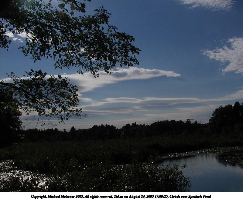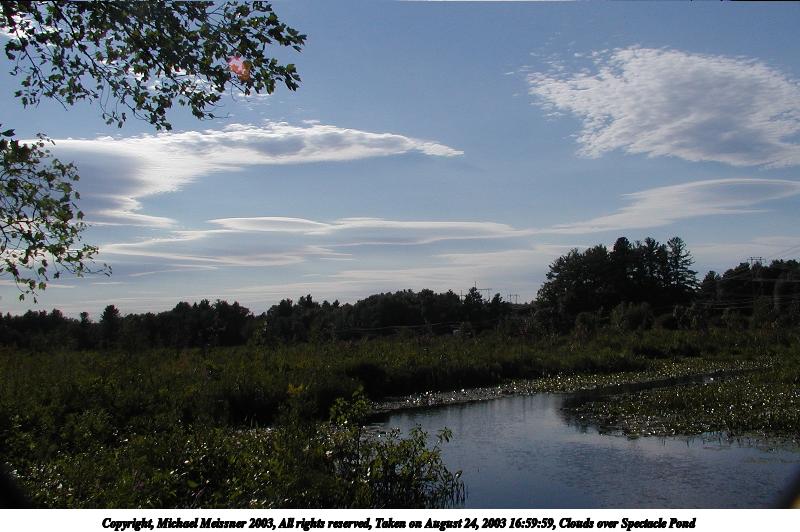 Picture #144: Clouds over Spectacle Pond 800x532, 81,707 bytes (80K), (html file) Copyright, Michael Meissner 2003, All rights reserved Olympus C-2100UZ camera f/7.0, ISO 100, 1/500 sec, 7.7mm, auto mode, SHQ, spot metering 35mm equivalent focal length 43.0mm Taken by Michael Meissner on August 24, 2003 16:59:59 Last modified on September 02, 2003 at 11:35 |