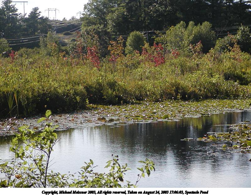 Picture #140: Spectacle Pond #3 800x623, 173,457 bytes (170K), (html file) Copyright, Michael Meissner 2003, All rights reserved Olympus C-2100UZ camera f/3.2, ISO 100, 1/650 sec, 27.3mm, auto mode, SHQ, spot metering 35mm equivalent focal length 151.0mm Taken by Michael Meissner on August 24, 2003 17:06:03 Last modified on September 02, 2003 at 11:35 |