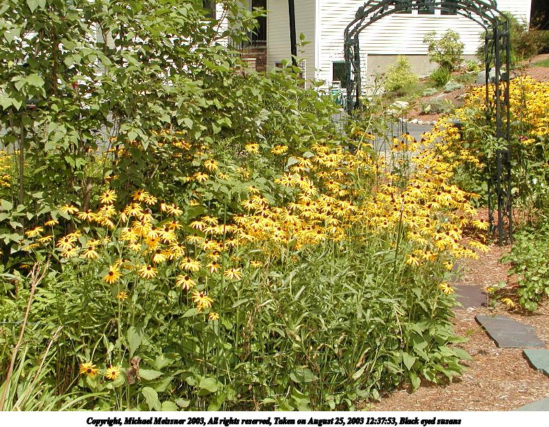 Picture #83: Black eyed susans #3 800x623, 149,098 bytes (146K), (html file) Copyright, Michael Meissner 2003, All rights reserved Olympus C-2100UZ camera f/3.2, ISO 100, 1/800 sec, 19.3mm, auto mode, SHQ, sunny, matrix metering 35mm equivalent focal length 107.0mm Taken by Michael Meissner on August 25, 2003 13:15:13 Last modified on September 02, 2003 at 11:35 |