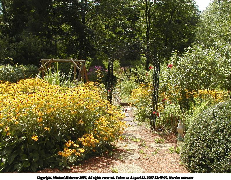 Picture #106: Garden entrance 800x623, 206,667 bytes (202K), (html file) Copyright, Michael Meissner 2003, All rights reserved Olympus C-2100UZ camera f/4.0, ISO 100, 1/650 sec, 7.8mm, auto mode, SHQ, cloudy, matrix metering 35mm equivalent focal length 43.0mm Taken by Michael Meissner on August 25, 2003 12:40:36 Last modified on September 02, 2003 at 11:35 |