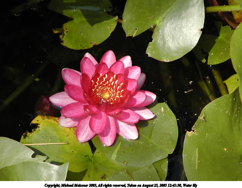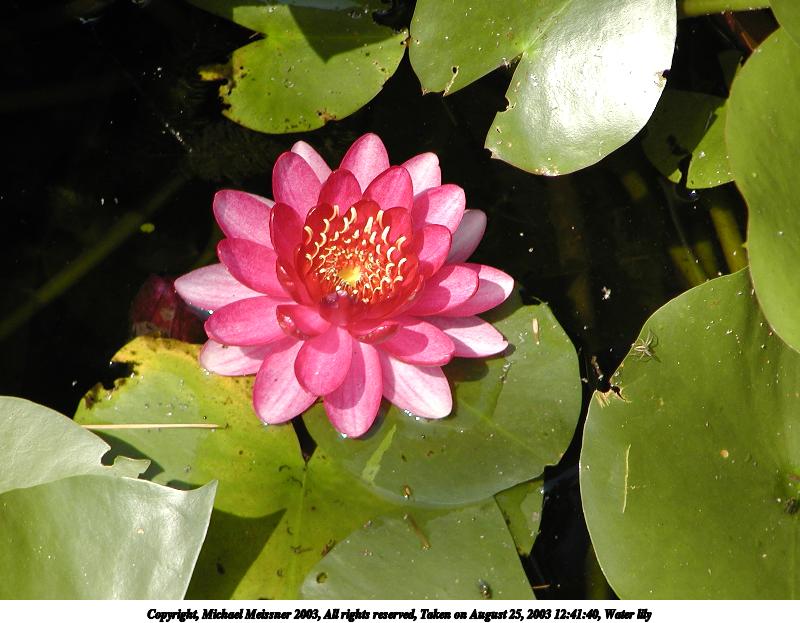 Picture #103: Water lily #2 800x623, 76,063 bytes (75K), (html file) Copyright, Michael Meissner 2003, All rights reserved Olympus C-2100UZ camera f/3.2, ISO 100, 1/500 sec, 45.8mm, auto mode, SHQ, cloudy, matrix metering, macro 35mm equivalent focal length 254.0mm Taken by Michael Meissner on August 25, 2003 12:41:40 Last modified on September 02, 2003 at 11:35 |