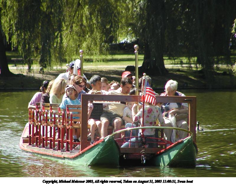 Picture #50: Swan boat #2 800x623, 135,633 bytes (133K), (html file) Copyright, Michael Meissner 2003, All rights reserved Olympus C-2100UZ camera f/3.2, ISO 100, 1/500 sec, 54.0mm, auto mode, SHQ, sunny, matrix metering 35mm equivalent focal length 300.0mm Taken by Michael Meissner on August 31, 2003 11:13:53 Last modified on September 02, 2003 at 11:35 |
