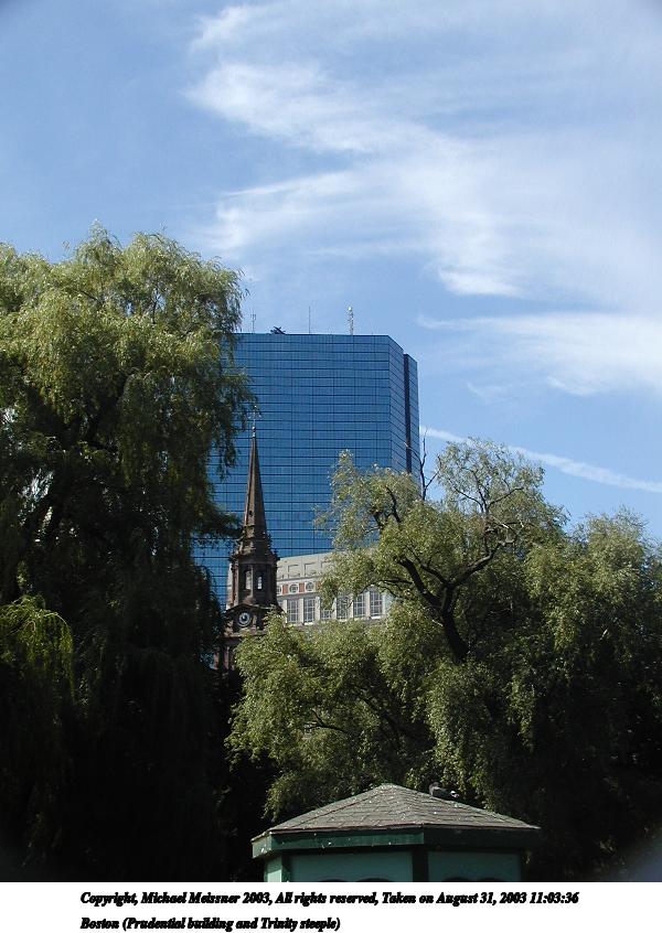 Picture #24: Boston above the trees 800x623, 91,085 bytes (89K), (html file) Copyright, Michael Meissner 2003, All rights reserved Olympus C-2100UZ camera f/4.5, ISO 100, 1/500 sec, 12.3mm, auto mode, SHQ, sunny, matrix metering 35mm equivalent focal length 68.0mm Taken by Michael Meissner on August 31, 2003 11:26:19 Last modified on September 02, 2003 at 11:35 |