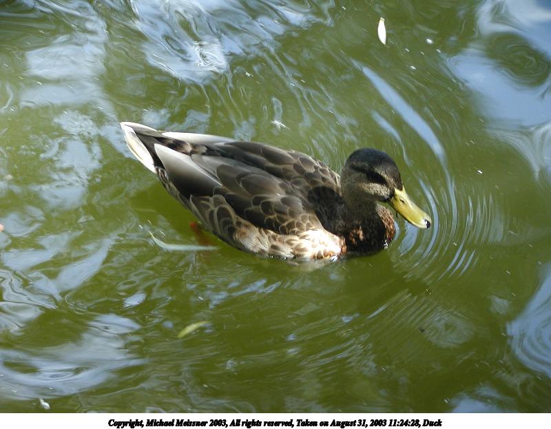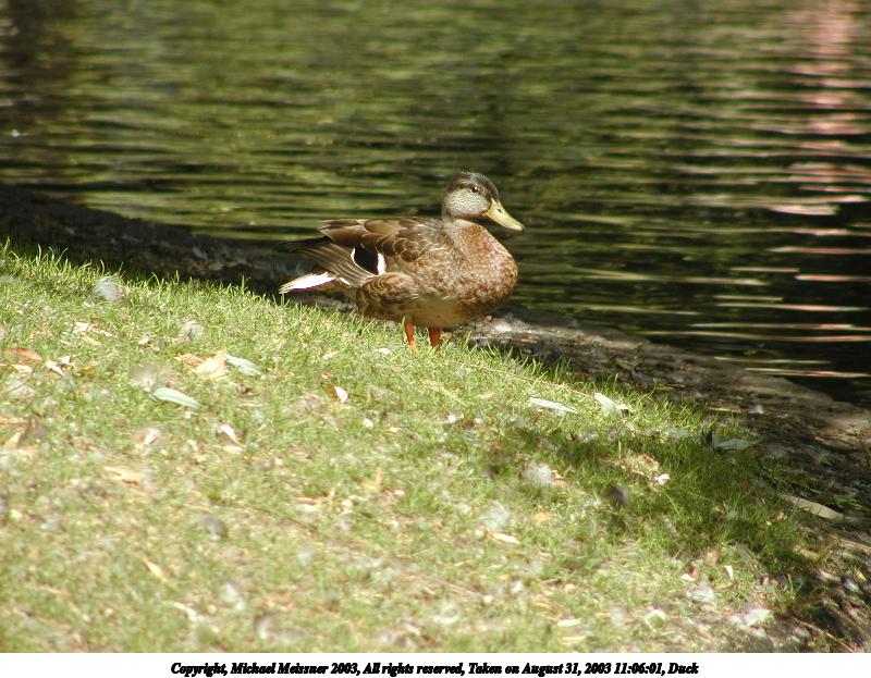 Picture #28: Duck #5 800x623, 79,655 bytes (78K), (html file) Copyright, Michael Meissner 2003, All rights reserved Olympus C-2100UZ camera f/2.8, ISO 100, 1/200 sec, 28.5mm, auto mode, SHQ, sunny, matrix metering 35mm equivalent focal length 158.0mm Taken by Michael Meissner on August 31, 2003 11:22:57 Last modified on September 02, 2003 at 11:35 |