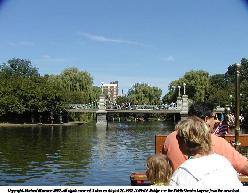 Picture #57: Bridge over the Public Garden Lagoon from the swan boat #3 800x623, 86,258 bytes (85K), (html file) Copyright, Michael Meissner 2003, All rights reserved Olympus C-2100UZ camera f/4.0, ISO 100, 1/500 sec, 7.7mm, auto mode, SHQ, cloudy, matrix metering 35mm equivalent focal length 43.0mm Taken by Michael Meissner on August 31, 2003 11:10:29 Last modified on September 02, 2003 at 11:35 |