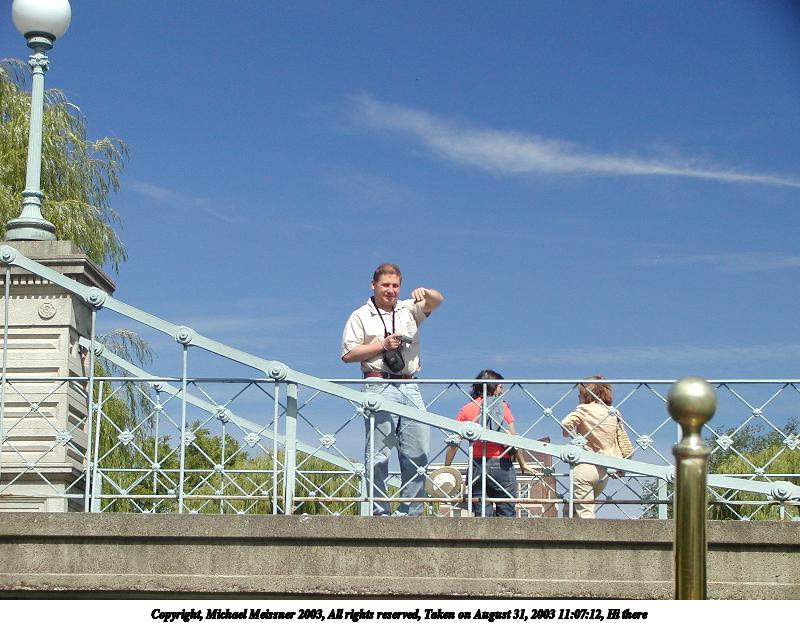 Picture #65: Bridge over the Public Garden Lagoon from the swan boat 800x623, 92,682 bytes (91K), (html file) Copyright, Michael Meissner 2003, All rights reserved Olympus C-2100UZ camera f/4.0, ISO 100, 1/650 sec, 7.0mm, auto mode, SHQ, cloudy, matrix metering 35mm equivalent focal length 39.0mm Taken by Michael Meissner on August 31, 2003 11:06:24 Last modified on September 02, 2003 at 11:35 |