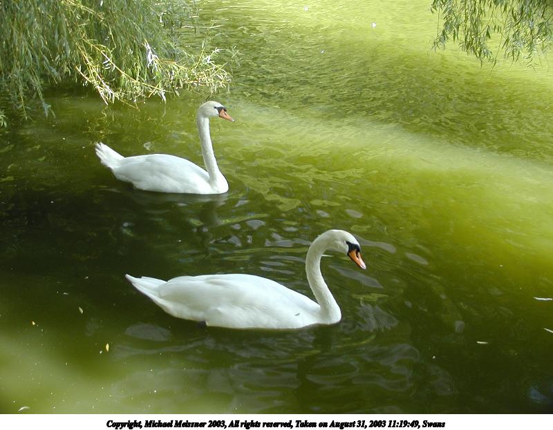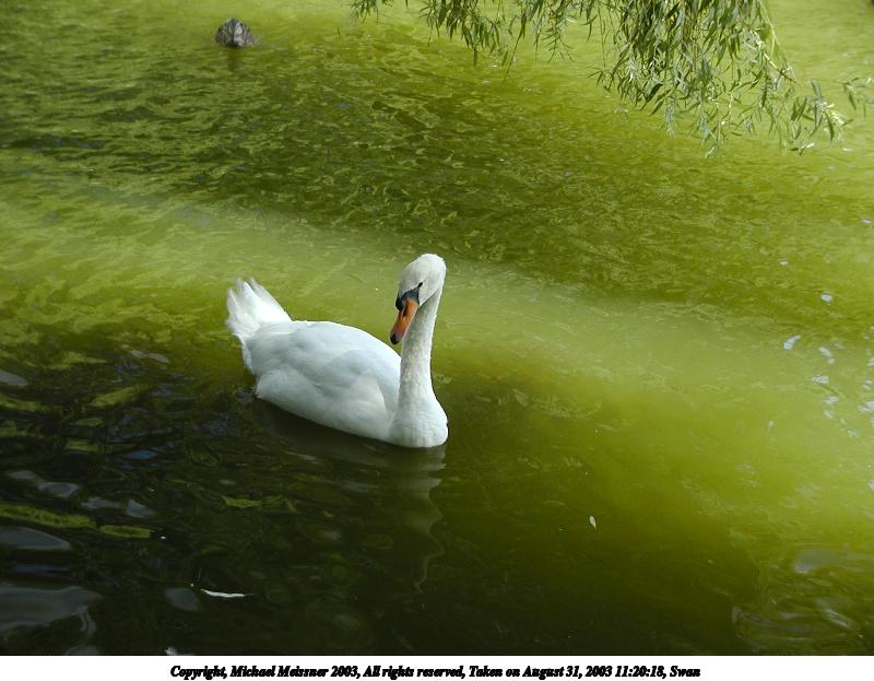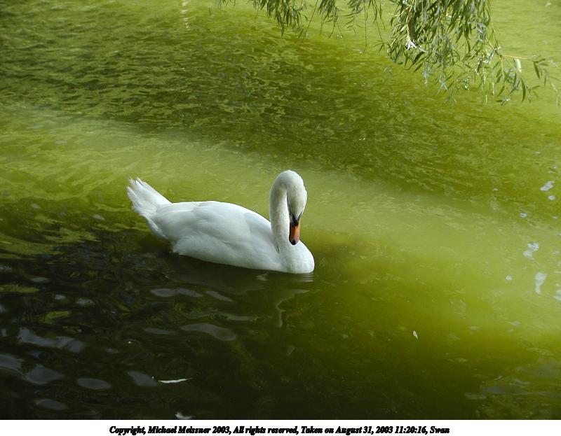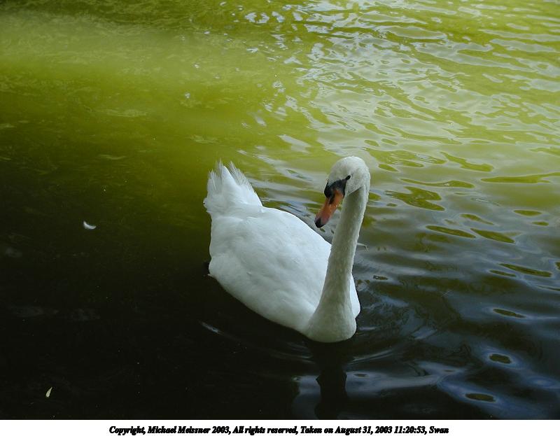 Picture #34: Swan #2 800x623, 72,068 bytes (71K), (html file) Copyright, Michael Meissner 2003, All rights reserved Olympus C-2100UZ camera f/2.8, ISO 100, 1/125 sec, 16.8mm, auto mode, SHQ, sunny, matrix metering 35mm equivalent focal length 93.0mm Taken by Michael Meissner on August 31, 2003 11:20:16 Last modified on September 02, 2003 at 11:35 Shutter speed of 1/125 or 1/250 may indicate use of flash |