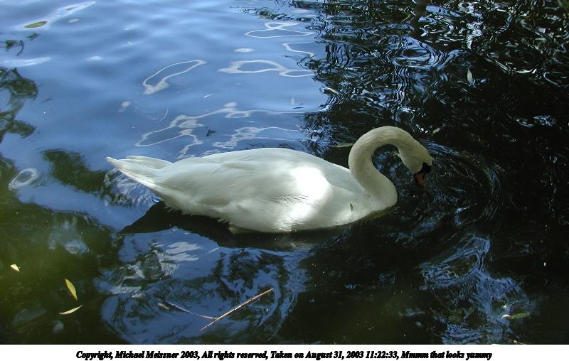 Picture #33: Swan #3 800x623, 73,557 bytes (72K), (html file) Copyright, Michael Meissner 2003, All rights reserved Olympus C-2100UZ camera f/2.8, ISO 100, 1/125 sec, 16.8mm, auto mode, SHQ, sunny, matrix metering 35mm equivalent focal length 93.0mm Taken by Michael Meissner on August 31, 2003 11:20:18 Last modified on September 02, 2003 at 11:35 Shutter speed of 1/125 or 1/250 may indicate use of flash |