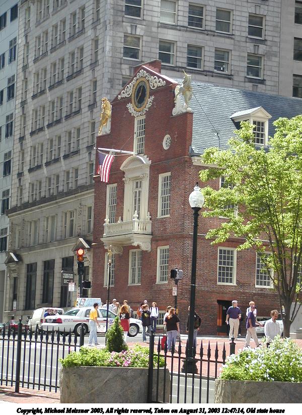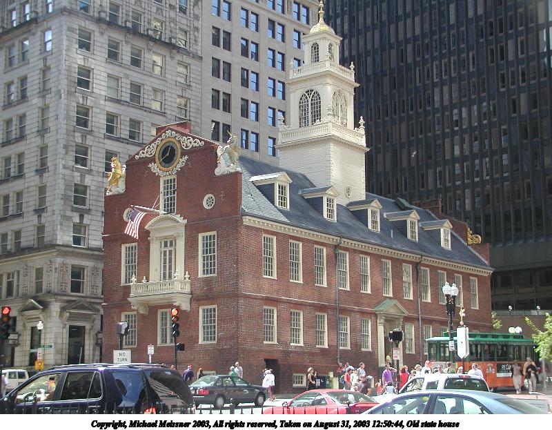 Picture #7: Old state house #2 800x623, 127,363 bytes (125K), (html file) Copyright, Michael Meissner 2003, All rights reserved Olympus C-2100UZ camera f/2.8, ISO 100, 1/125 sec, 11.0mm, auto mode, SHQ, sunny, matrix metering 35mm equivalent focal length 61.0mm Taken by Michael Meissner on August 31, 2003 12:50:44 Last modified on September 02, 2003 at 11:35 Shutter speed of 1/125 or 1/250 may indicate use of flash |