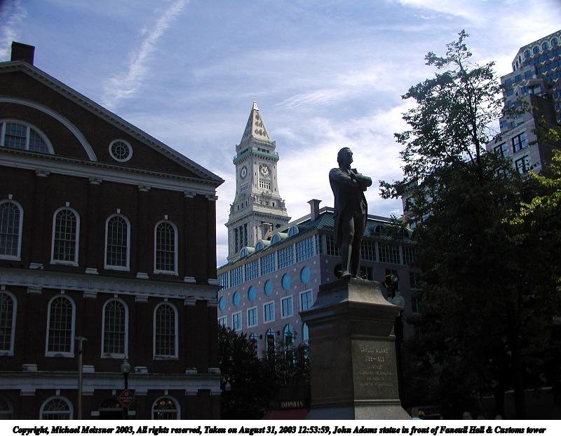 Picture #3: John Adams statue in front of Faneuil Hall & Customs tower 800x623, 87,327 bytes (86K), (html file) Copyright, Michael Meissner 2003, All rights reserved Olympus C-2100UZ camera f/3.2, ISO 100, 1/500 sec, 7.5mm, auto mode, SHQ, sunny, matrix metering 35mm equivalent focal length 42.0mm Taken by Michael Meissner on August 31, 2003 12:53:59 Last modified on September 02, 2003 at 11:35 |