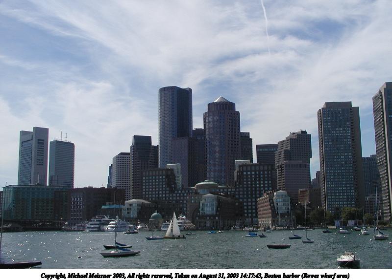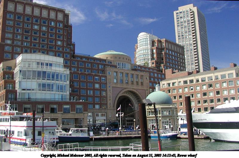Picture #5: Boston harbor (Rowes wharf area) #2 800x573, 72,214 bytes (71K), (html file) Copyright, Michael Meissner 2003, All rights reserved Olympus C-2100UZ camera f/5.0, ISO 100, 1/500 sec, 8.6mm, auto mode, SHQ, matrix metering 35mm equivalent focal length 48.0mm Taken by Michael Meissner on August 31, 2003 14:17:43 Last modified on September 02, 2003 at 11:35 |