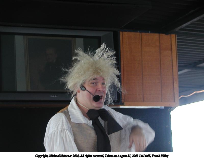 Picture #7: Frank Ridley #2 600x823, 71,536 bytes (70K), (html file) Copyright, Michael Meissner 2003, All rights reserved Olympus C-2100UZ camera f/2.8, ISO 100, flash, 1/500 sec, 10.2mm, auto mode, SHQ, matrix metering 35mm equivalent focal length 57.0mm Taken by Michael Meissner on August 31, 2003 14:45:55 Last modified on September 02, 2003 at 11:35 |