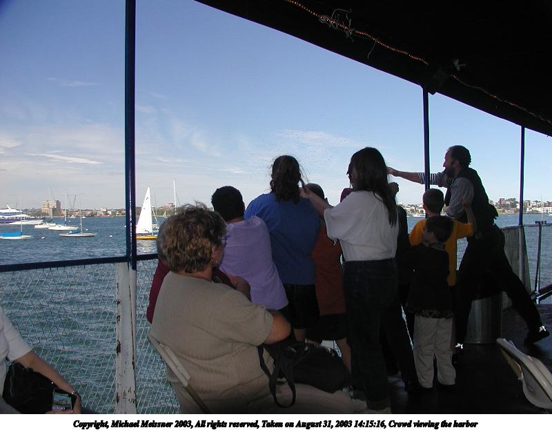 Picture #4: Crowd viewing the harbor 800x623, 67,007 bytes (66K), (html file) Copyright, Michael Meissner 2003, All rights reserved Olympus C-2100UZ camera f/3.2, ISO 100, flash, 1/650 sec, 7.0mm, auto mode, SHQ, matrix metering 35mm equivalent focal length 39.0mm Taken by Michael Meissner on August 31, 2003 14:15:16 Last modified on September 02, 2003 at 11:35 |