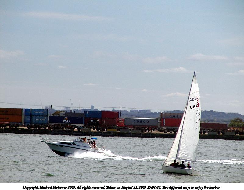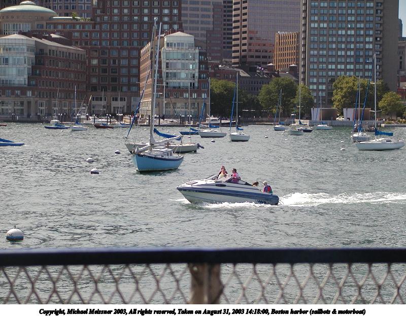 Picture #6: Boston harbor (sailbots & motorboat) 800x623, 128,017 bytes (126K), (html file) Copyright, Michael Meissner 2003, All rights reserved Olympus C-2100UZ camera f/3.2, ISO 100, 1/650 sec, 19.3mm, auto mode, SHQ, matrix metering 35mm equivalent focal length 107.0mm Taken by Michael Meissner on August 31, 2003 14:18:00 Last modified on September 02, 2003 at 11:35 |