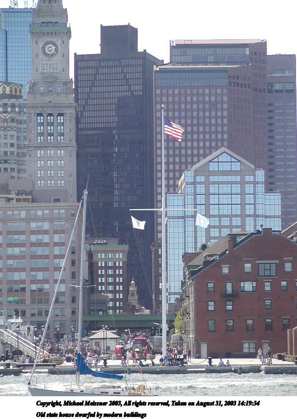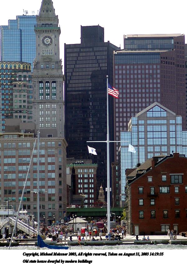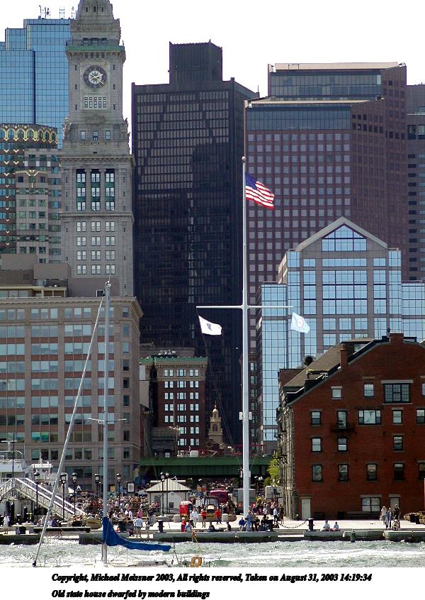 Picture #10: Old state house dwarfed by modern buildings #2 600x846, 124,032 bytes (122K), (html file) Copyright, Michael Meissner 2003, All rights reserved Olympus C-2100UZ camera f/2.8, ISO 100, 1/320 sec, 28.5mm, auto mode, SHQ, matrix metering 35mm equivalent focal length 158.0mm Taken by Michael Meissner on August 31, 2003 14:19:34 Last modified on September 02, 2003 at 11:35 |