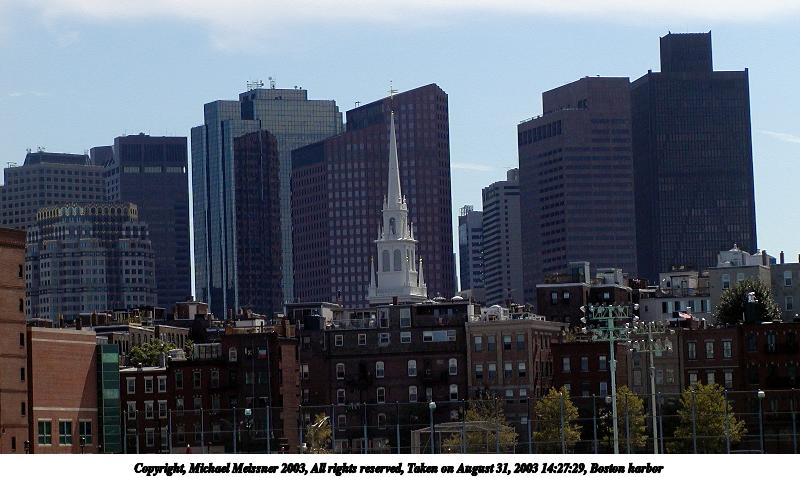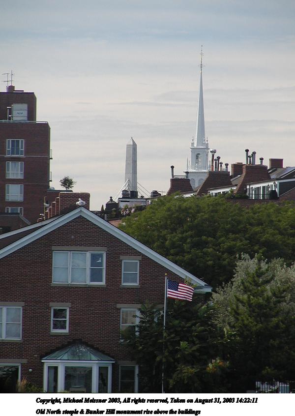 Picture #13: Old North steeple & Bunker Hill monument rise above the buildings 600x846, 76,565 bytes (75K), (html file) Copyright, Michael Meissner 2003, All rights reserved Olympus C-2100UZ camera f/3.2, ISO 100, 1/500 sec, 51.0mm, auto mode, SHQ, matrix metering 35mm equivalent focal length 283.0mm Taken by Michael Meissner on August 31, 2003 14:22:11 Last modified on September 02, 2003 at 11:35 |