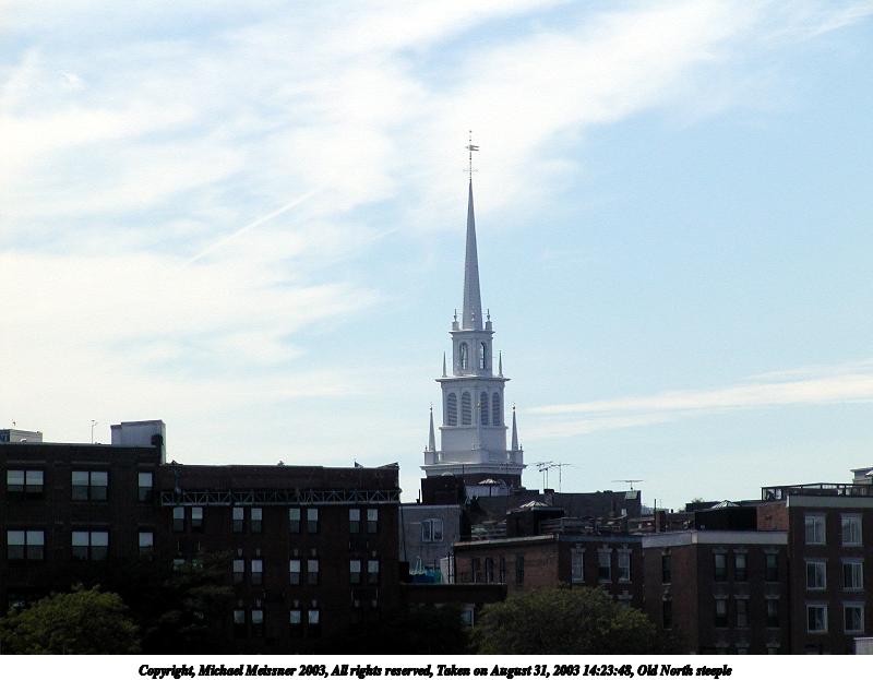 Picture #15: Old North steeple 800x623, 47,264 bytes (47K), (html file) Copyright, Michael Meissner 2003, All rights reserved Olympus C-2100UZ camera f/5.0, ISO 100, 1/400 sec, 35.7mm, auto mode, SHQ, matrix metering 35mm equivalent focal length 198.0mm Taken by Michael Meissner on August 31, 2003 14:23:48 Last modified on September 02, 2003 at 11:35 |