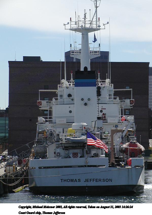 Picture #17: Coast Guard ship, Thomas Jefferson 600x846, 83,336 bytes (82K), (html file) Copyright, Michael Meissner 2003, All rights reserved Olympus C-2100UZ camera f/4.5, ISO 100, 1/500 sec, 27.3mm, auto mode, SHQ, matrix metering 35mm equivalent focal length 151.0mm Taken by Michael Meissner on August 31, 2003 14:26:24 Last modified on September 02, 2003 at 11:35 |