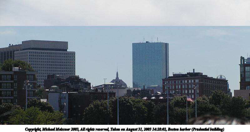 Picture #19: Boston harbor (Prudential building) 800x423, 46,699 bytes (46K), (html file) Copyright, Michael Meissner 2003, All rights reserved Olympus C-2100UZ camera f/5.0, ISO 100, 1/500 sec, 24.2mm, auto mode, SHQ, matrix metering 35mm equivalent focal length 134.0mm Taken by Michael Meissner on August 31, 2003 14:28:02 Last modified on September 02, 2003 at 11:35 |