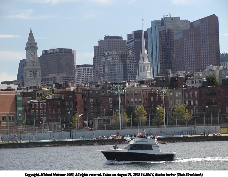 Picture #20: Boston harbor (State Street bank) 800x623, 98,674 bytes (97K), (html file) Copyright, Michael Meissner 2003, All rights reserved Olympus C-2100UZ camera f/3.5, ISO 100, 1/500 sec, 24.2mm, auto mode, SHQ, matrix metering 35mm equivalent focal length 134.0mm Taken by Michael Meissner on August 31, 2003 14:28:14 Last modified on September 02, 2003 at 11:35 |