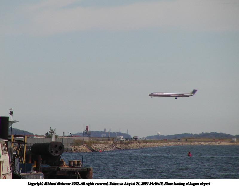 Picture #29: Plane landing at Logan airport #3 800x623, 78,369 bytes (77K), (html file) Copyright, Michael Meissner 2003, All rights reserved Olympus C-2100UZ camera f/7.0, ISO 100, 1/400 sec, 17.3mm, auto mode, SHQ, matrix metering 35mm equivalent focal length 96.0mm Taken by Michael Meissner on August 31, 2003 15:04:15 Last modified on September 02, 2003 at 11:35 |