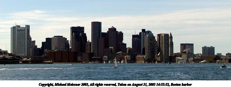 Picture #3: Boston harbor #2 800x623, 89,198 bytes (88K), (html file) Copyright, Michael Meissner 2003, All rights reserved Olympus C-2100UZ camera f/4.5, ISO 100, 1/500 sec, 26.2mm, auto mode, SHQ, matrix metering 35mm equivalent focal length 145.0mm Taken by Michael Meissner on August 31, 2003 14:16:47 Last modified on September 02, 2003 at 11:35 |