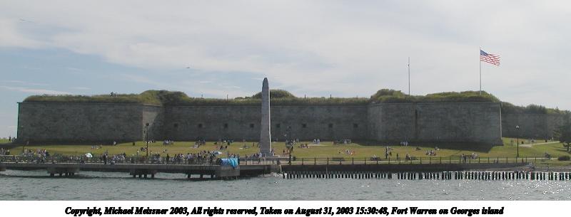 Picture #31: Fort Warren on Georges island 800x305, 37,965 bytes (38K), (html file) Copyright, Michael Meissner 2003, All rights reserved Olympus C-2100UZ camera f/5.6, ISO 100, 1/500 sec, 8.8mm, auto mode, SHQ, matrix metering 35mm equivalent focal length 49.0mm Taken by Michael Meissner on August 31, 2003 15:30:48 Last modified on September 02, 2003 at 11:35 |