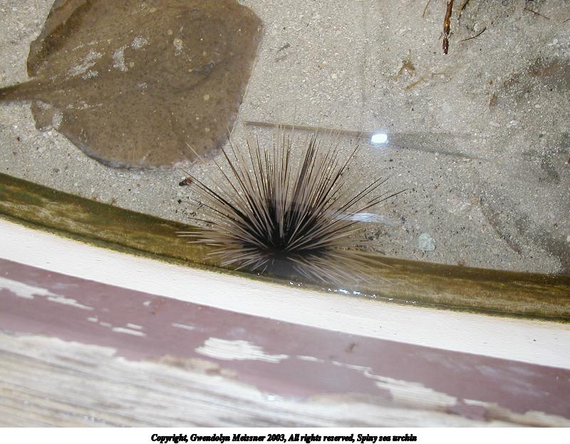 Picture #16: Spiny sea urchin #2 800x623, 114,174 bytes (112K), (html file) Copyright, Gwendolyn Meissner 2003, All rights reserved Olympus D-510Z camera f/2.8, ISO 100, 1/200 sec, 5.6mm, auto mode, HQ, matrix metering 35mm equivalent focal length 37.0mm Taken by Gwendolyn Meissner Last modified on May 29, 2003 at 10:34 |