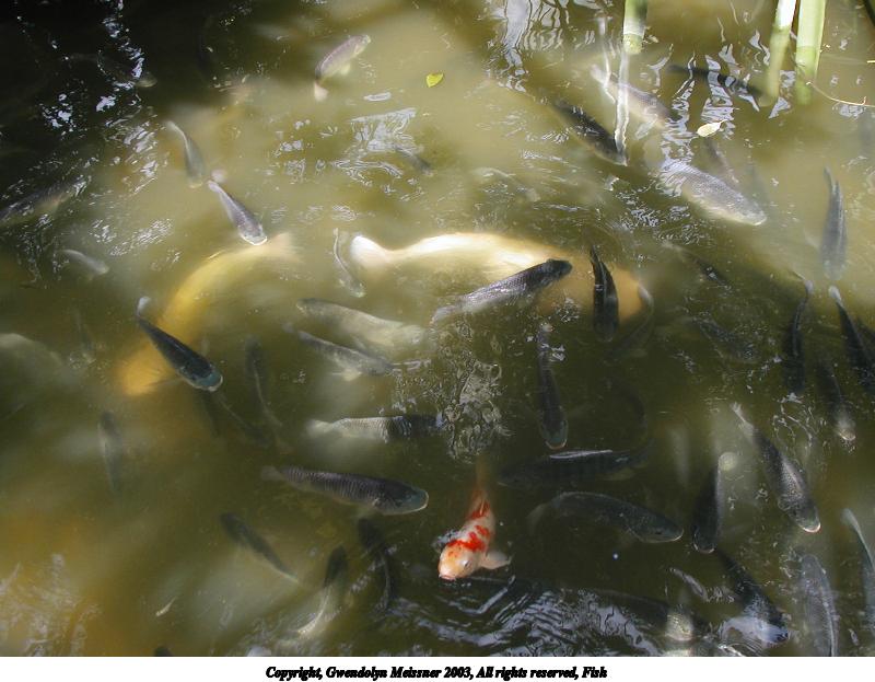 Picture #3: Fish #2 800x623, 89,280 bytes (88K), (html file) Copyright, Gwendolyn Meissner 2003, All rights reserved Olympus D-510Z camera f/3.6, ISO 100, 1/100 sec, 8.5mm, auto mode, HQ, matrix metering 35mm equivalent focal length 55.0mm Taken by Gwendolyn Meissner Last modified on May 29, 2003 at 10:34 |
