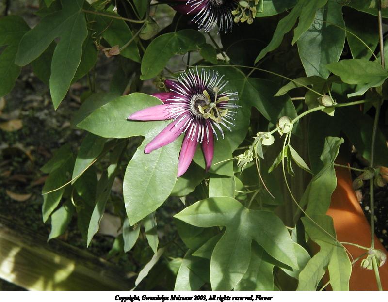 Picture #46: Flower #28 800x623, 109,657 bytes (108K), (html file) Copyright, Gwendolyn Meissner 2003, All rights reserved Olympus D-510Z camera f/4.4, ISO 100, 1/125 sec, 15.7mm, auto mode, HQ, matrix metering 35mm equivalent focal length 102.0mm Taken by Gwendolyn Meissner Last modified on May 29, 2003 at 10:34 |