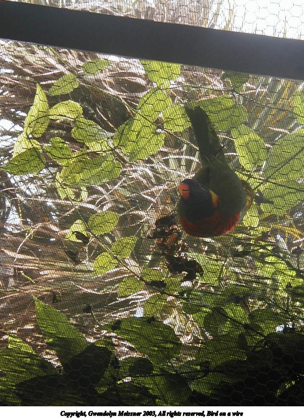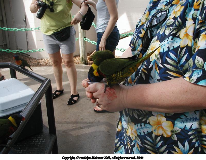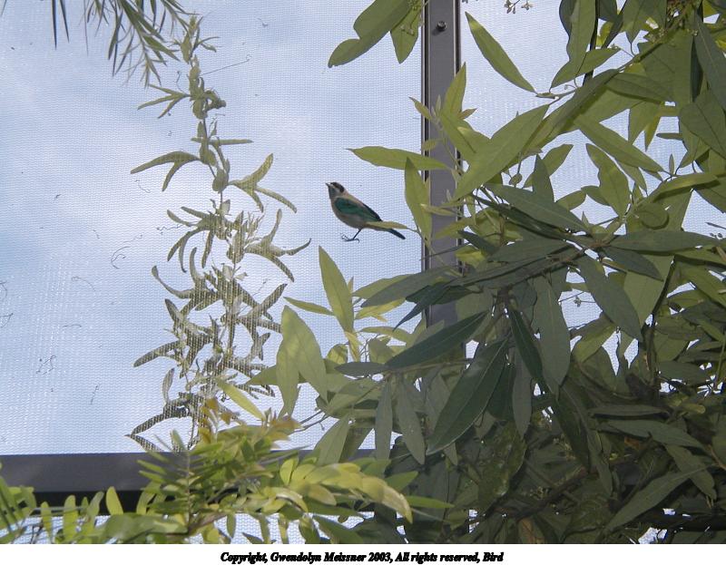Picture #16: Bird #7 800x623, 37,806 bytes (37K), (html file) Copyright, Gwendolyn Meissner 2003, All rights reserved Olympus D-510Z camera f/8.6, ISO 141, flash, 1/500 sec, 15.7mm, auto mode, HQ, matrix metering 35mm equivalent focal length 102.0mm Taken by Gwendolyn Meissner Last modified on May 29, 2003 at 10:34 |