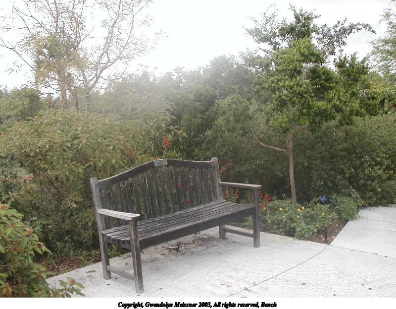Picture #22: Bench 800x623, 115,903 bytes (114K), (html file) Copyright, Gwendolyn Meissner 2003, All rights reserved Olympus D-510Z camera f/2.8, ISO 141, flash, 1/500 sec, 5.6mm, auto mode, HQ, matrix metering 35mm equivalent focal length 37.0mm Taken by Gwendolyn Meissner Last modified on May 29, 2003 at 10:34 |