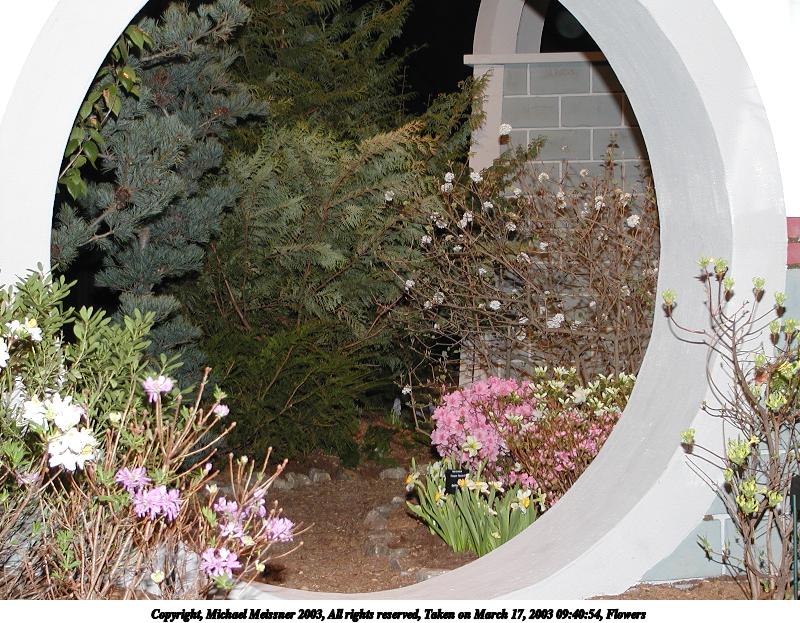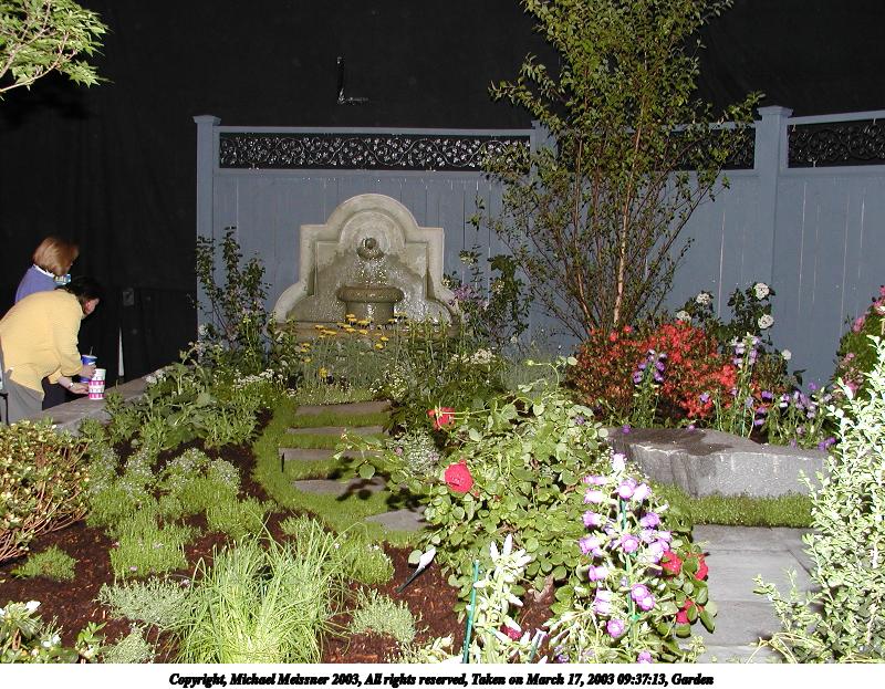Picture #4: Garden 800x623, 153,099 bytes (150K), (html file) Copyright, Michael Meissner 2003, All rights reserved Olympus C-2100UZ camera f/2.8, ISO 100, 1/250 sec, 7.8mm, shutter priority, SHQ, matrix metering 35mm equivalent focal length 43.0mm Taken by Michael Meissner on March 17, 2003 09:37:13 Last modified on March 28, 2003 at 16:02 Shutter speed of 1/125 or 1/250 may indicate use of flash |