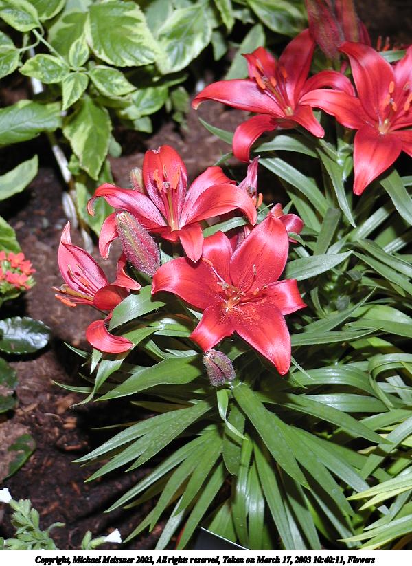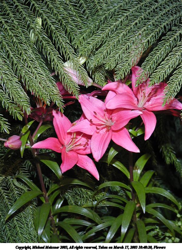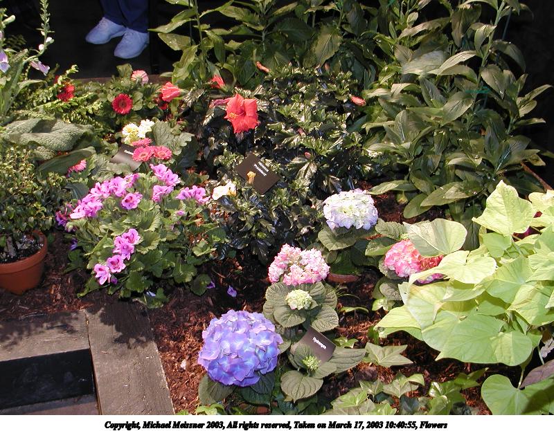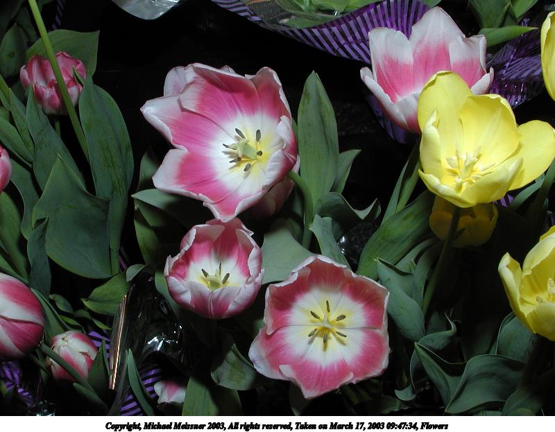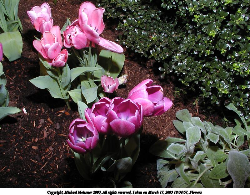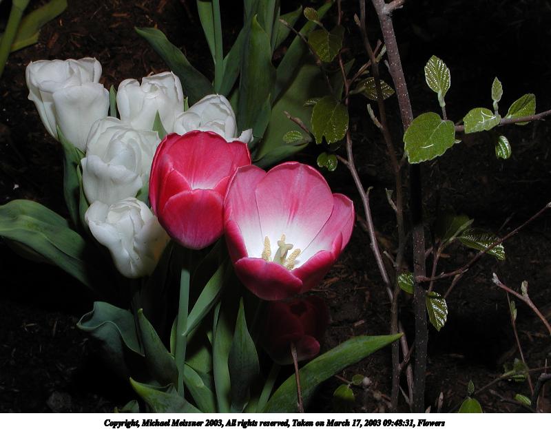 Picture #9: Flowers #2 800x623, 139,819 bytes (137K), (html file) Copyright, Michael Meissner 2003, All rights reserved Olympus C-2100UZ camera f/2.8, ISO 100, 1/250 sec, 17.3mm, shutter priority, SHQ, matrix metering 35mm equivalent focal length 96.0mm Taken by Michael Meissner on March 17, 2003 09:40:54 Last modified on March 28, 2003 at 16:02 Shutter speed of 1/125 or 1/250 may indicate use of flash |