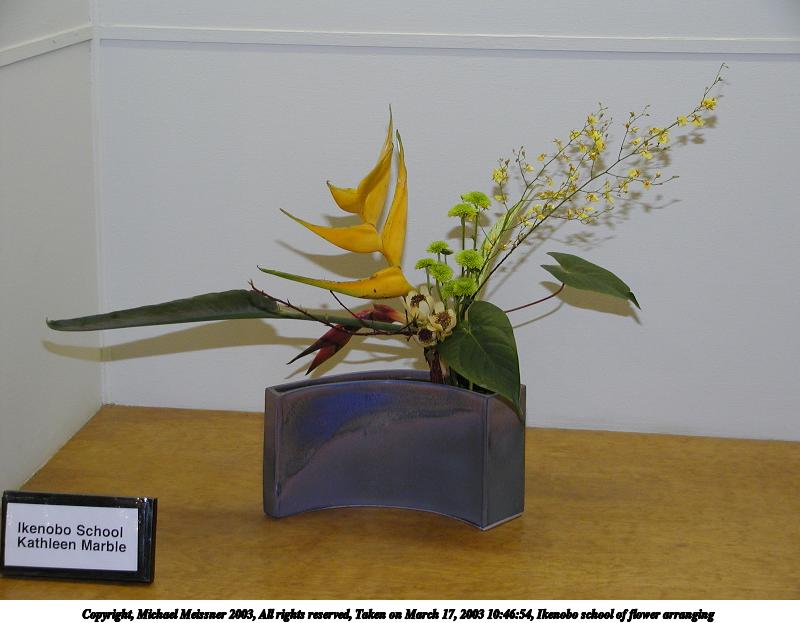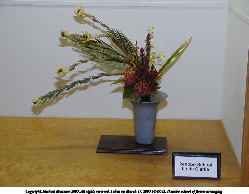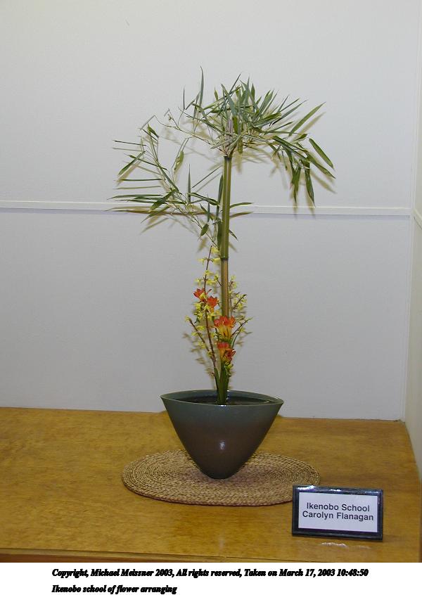 Picture #48: Ikenobo school of flower arranging 600x846, 50,904 bytes (50K), (html file) Copyright, Michael Meissner 2003, All rights reserved Olympus C-2100UZ camera f/2.8, ISO 100, 1/50 sec, 11.0mm, auto mode, SHQ, matrix metering 35mm equivalent focal length 61.0mm Taken by Michael Meissner on March 17, 2003 10:46:39 Last modified on March 28, 2003 at 16:02 |